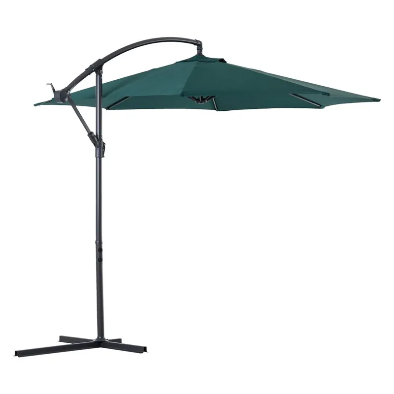 Maszt parasola i żebra tego metalowego parasola wiszącego na wsporniku o długości 3 m są wykonane z metalu. Średnica słupka parasola sięga 48 mm. Twardość materiału jest bardzo wysoka, dlatego parasol jest naturalnie sztywniejszy. Dzięki 6 solidnym żebrom parasol zawsze pozostaje stabilny podczas użytkowania. Stal ma nie tylko odporną na zużycie powierzchnię, ale także pełni funkcję wodoodporną, odporną na pot i erozję, dzięki czemu ten parasol jest w stanie sprostać potrzebom różnych środowisk zewnętrznych.
