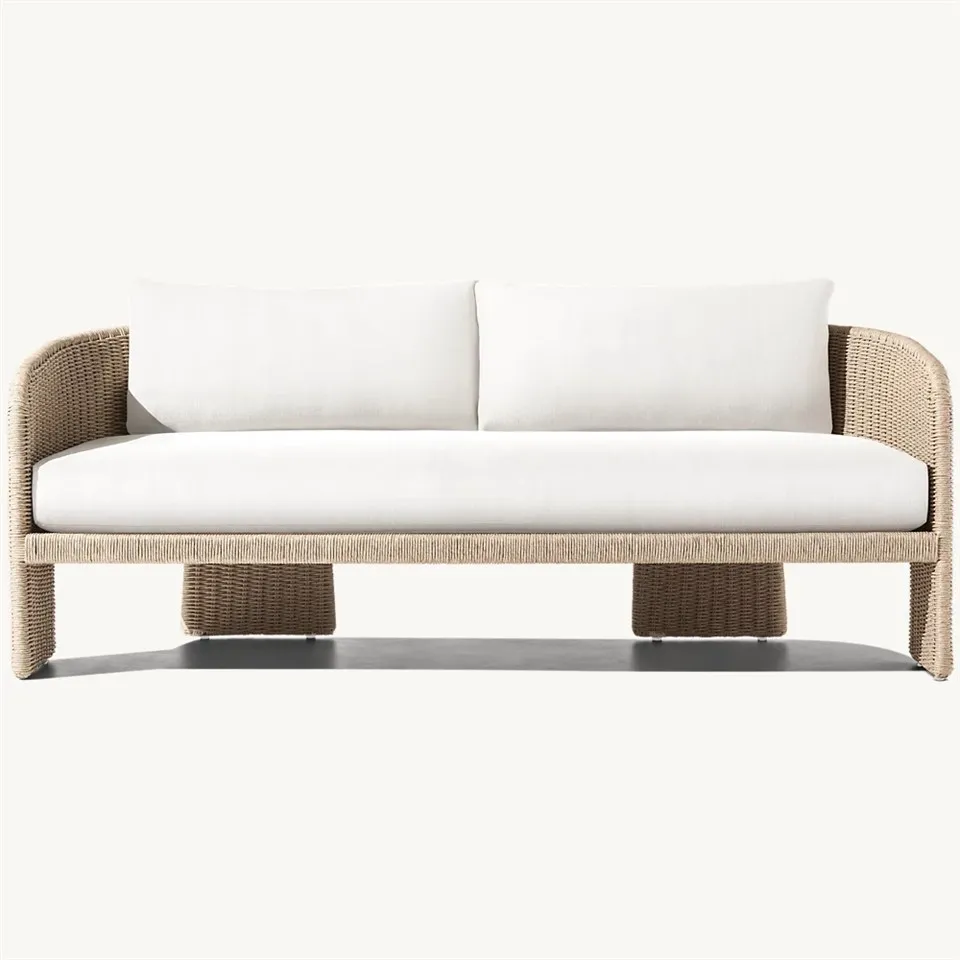 Rama sofy rattanowej ma solidną stalową konstrukcję ramy z wzorem rattanowej wikliny, dzięki czemu jest ona zarówno nowoczesna, jak i trwała. Solidność stalowej ramy zapewnia stabilność sofy i może pewnie utrzymać ciężar całej sofy, niezależnie od tego, czy jest umieszczona na trawie, czy na podłodze. Sprytne połączenie tylnych nóg i oparcia sprawia, że sofa wygląda piękniej, a jednocześnie zwiększa bezpieczeństwo i stabilność użytkowania.
